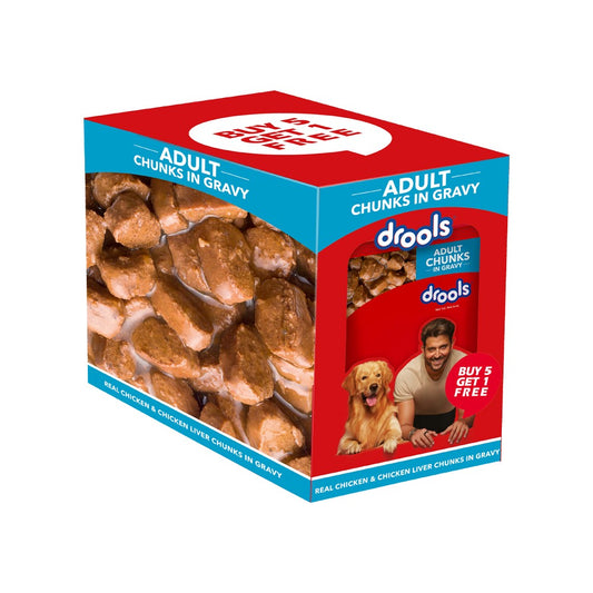 Drools Adult Dog Wet Food (Chicken Liver Chunks in Gravy) : 5 x 150 g + 150 g