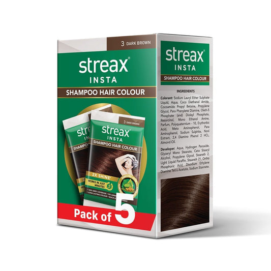 Streax Insta Shampoo Hair Colour (3 Dark Brown) : 1 pack (5 pieces)