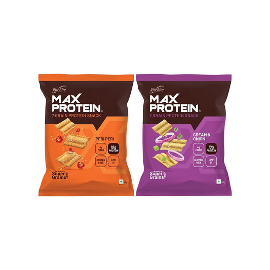 RiteBite Max Protein Cream & Onion Chips + Max Protein Peri Peri Chips Combo : 60 g + 60 g