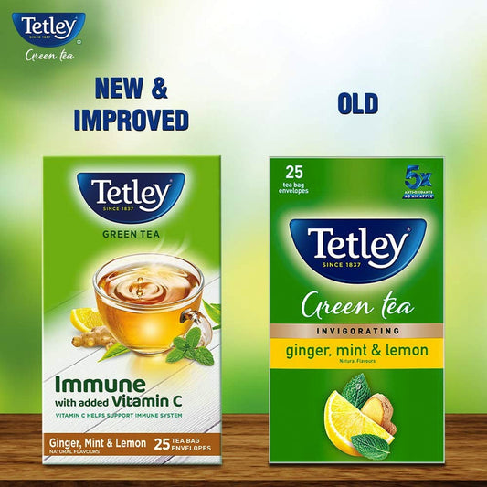 Tetley Ginger, Mint & Lemon Green Tea Bags (Immune with added Vitamin C) - Pack of 2 : 2 x 25 pieces