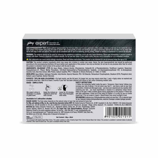 Godrej Expert Rich Hair Colour for Women & Men (Natural Black) : 1 pack (80 g + 80 ml)