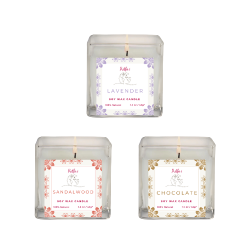 Soy Wax Candle Set of 3 Candles - Lavender, Mogra, Rose