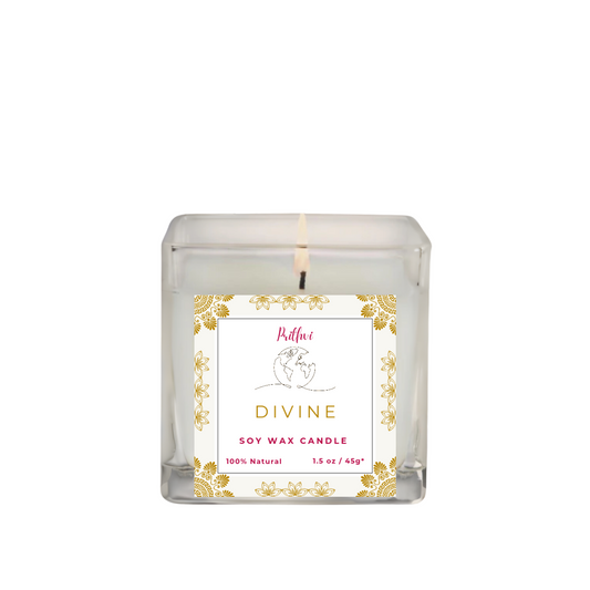 Prithvi Handmade Soy Wax Candle with "Divine" Fragrance (45g/1.5oz, 8-10 Hours Burn Time)