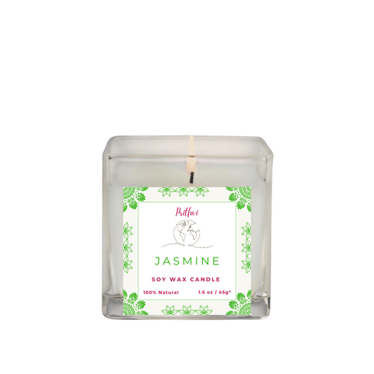 Prithvi Handmade Soy Wax Candle with "Jasmine" Fragrance (45g/1.5oz, 8-10 Hours Burn Time)