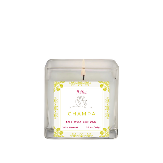 Prithvi Handmade Soy Wax Candle with "Champa" Fragrance (45g/1.5oz, 8-10 Hours Burn Time)
