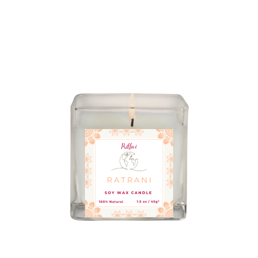Prithvi Handmade Soy Wax Candle with "Rathrani" Fragrance (45g/1.5oz, 8-10 Hours Burn Time)