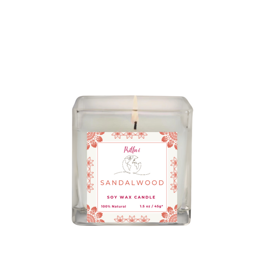 Prithvi Handmade Soy Wax Candle with "Sandalwood" Fragrance (45g/1.5oz, 8-10 Hours Burn Time)
