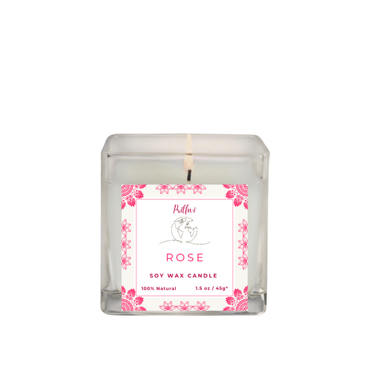 Prithvi Handmade Soy Wax Candle with "Rose" Fragrance (45g/1.5oz, 8-10 Hours Burn Time)