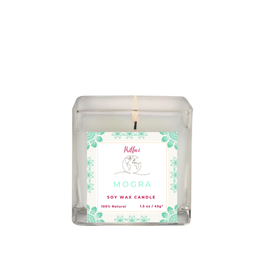 Prithvi Handmade Soy Wax Candle with "Mogra" Fragrance (45g/1.5oz, 8-10 Hours Burn Time)