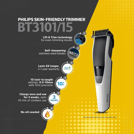Philips BT3101/15 45 Min Runtime Beard Trimmer (Black, White) : 1 unit