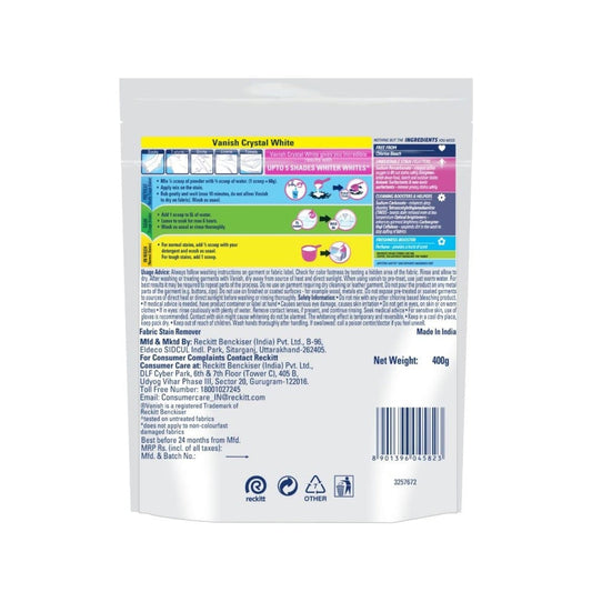 Vanish Oxi-Action White Chlorine Bleach Fabric Whitener : 400 g