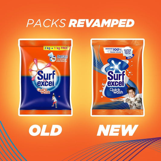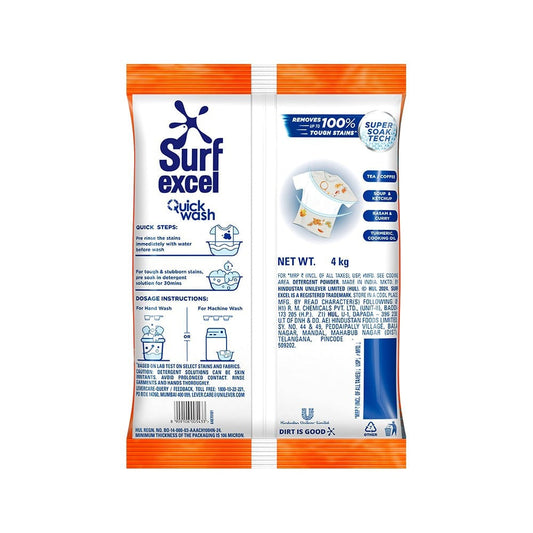 Surf Excel Quick Wash Detergent Powder - Free 1 kg : 3 kg + 1 kg