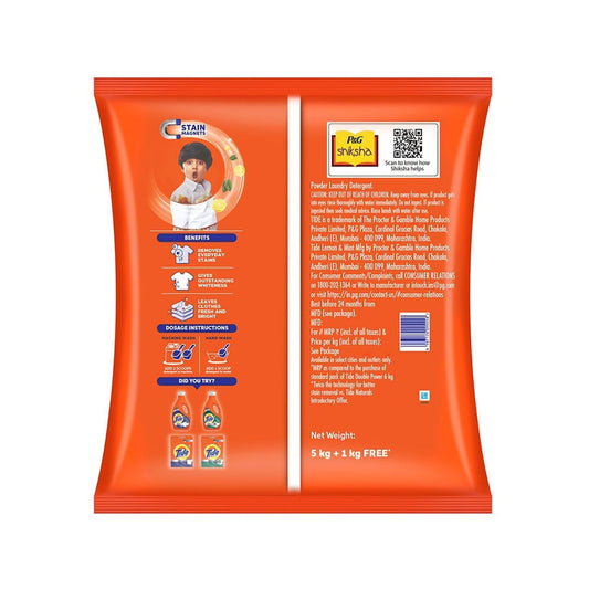 Tide Double Power Detergent Powder (Lemon & Mint) : 5 kg + 1 kg