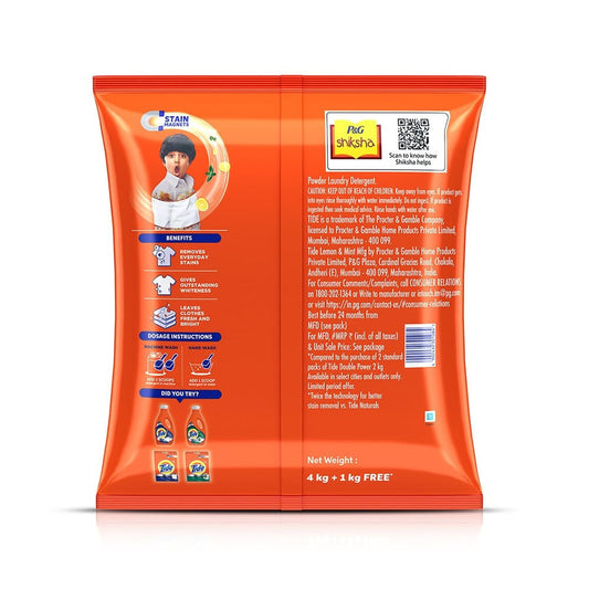 Tide Double Power Detergent Powder (Lemon & Mint) : 5 kg (4 kg + 1 kg)