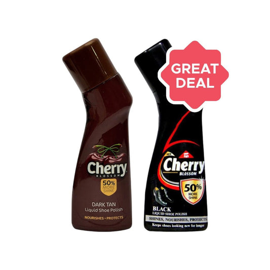 Cherry Blossom Dark Tan Liquid Shoe Polish + Black Liquid Shoe Polish Combo : 75ml + 75ml