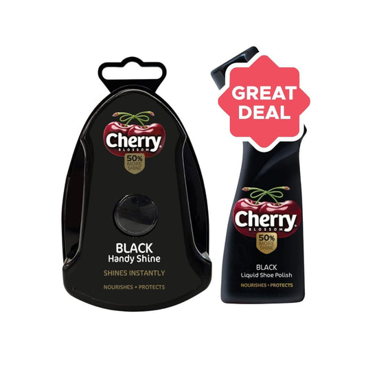 Cherry Blossom Black Liquid Shoe Polish + Black Handy Shoe Shiner + Black Wax Shoe Polish Combo : 75 ml + 1 unit + 40 g