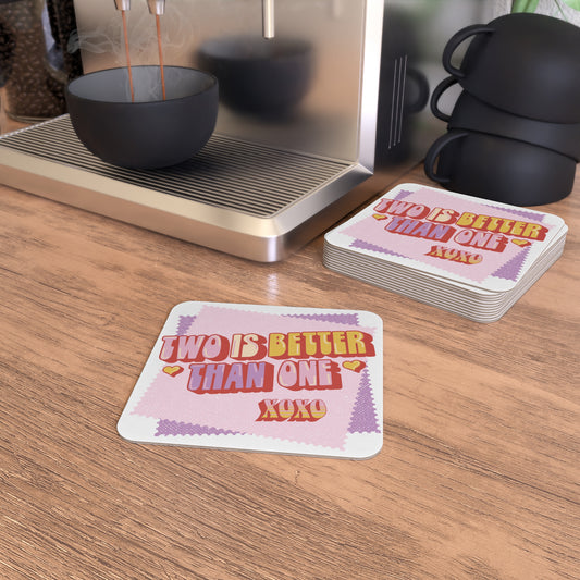Two is Better Than One XOXO: Printed Coaster Set (Set of 2)