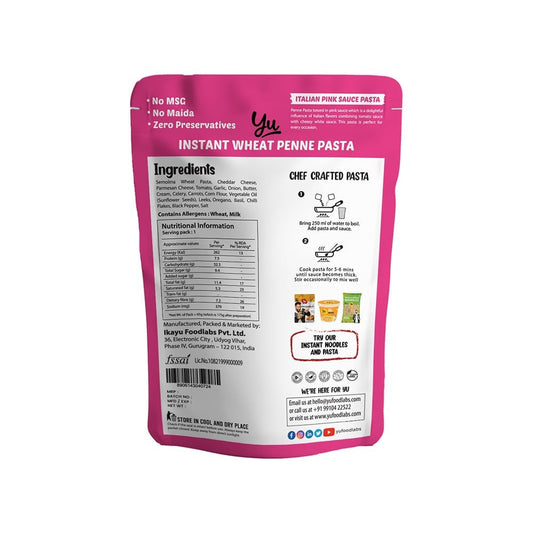 Yu Pink Sauce Instant Wheat Pasta (Penne) - Buy 1 Get 1 Free : 1 x 65 g + 1 x 65 g