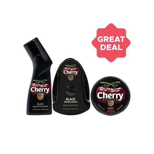 Cherry Blossom Black Liquid Shoe Polish + Black Handy Shoe Shiner + Black Wax Shoe Polish Combo : 75 ml + 1 unit + 40 g