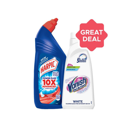 Harpic Disinfectant Liquid Toilet Cleaner - (Original) + Vanish Oxi Action Liquid Stain Remover Combo : 1 l + 800 ml