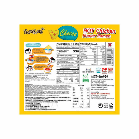 Samyang Ramen Instant Noodles - Cheese Hot Chicken Flavour : 140 g