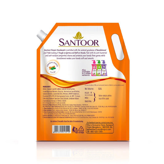 Santoor Classic Hand Wash with Sandalwood : 1.5 ltr