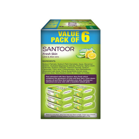 Santoor Fresh Skin Aloe Vera & Lime Soap - Pack of 6 : 6 x 125 g