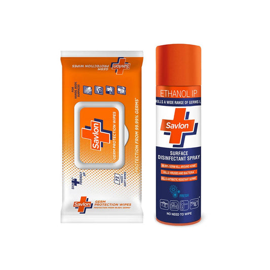 Savlon Germ Protection Multipurpose Wipes + Surface Disinfectant Spray Combo : 72 units + 170 g