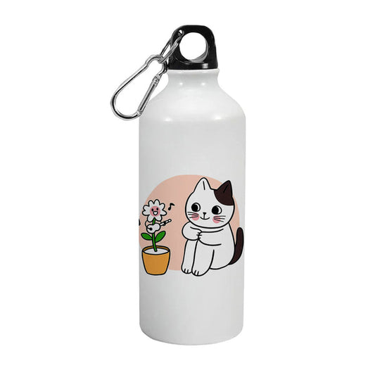 Flowerpot with Cat: Printed Sipper Bottle | 600ml