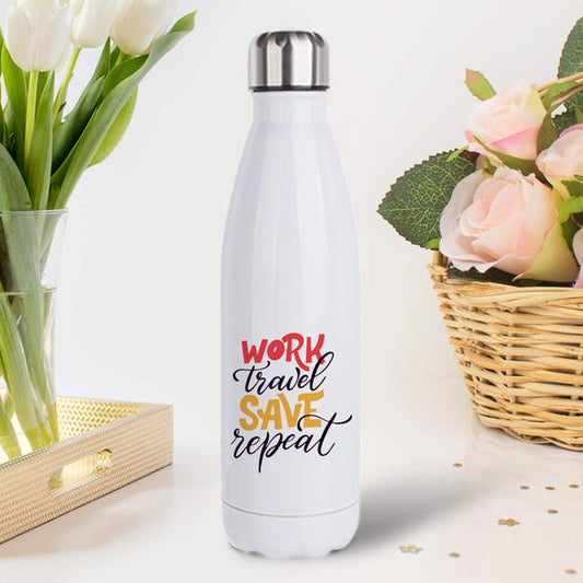 Work Travel Save Repeat: Printed Stainless Steel Bottle | 500ml
