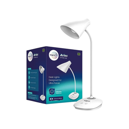 Wipro Aries Rechargeable Table 6W Desk Light (White) : 1 unit