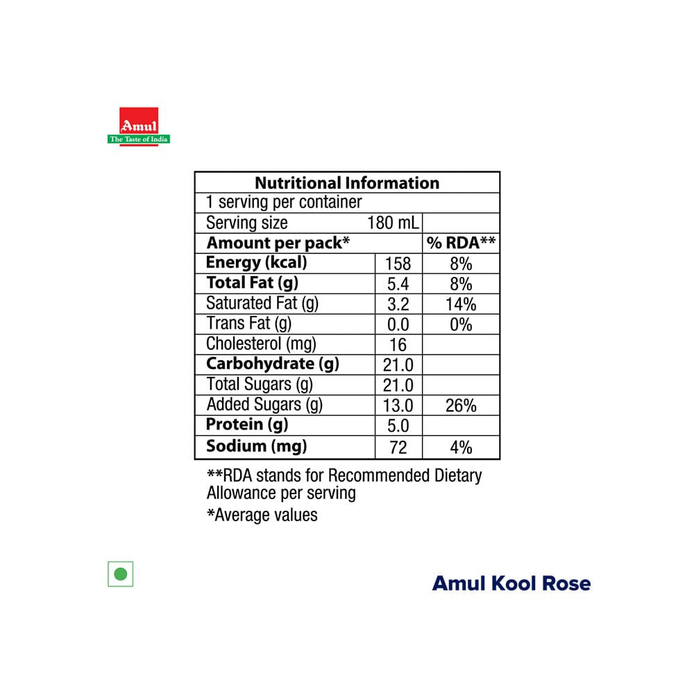 Amul Kool Rose Flavoured Milk is a delightful and refreshing beverage that combines the rich taste of milk with the enchanting flavor of rose. Perfect for any time of the day, this drink is a delicious way to indulge your senses. Enjoy it chilled for a refreshing treat or use it in your favorite recipes for a unique twist!