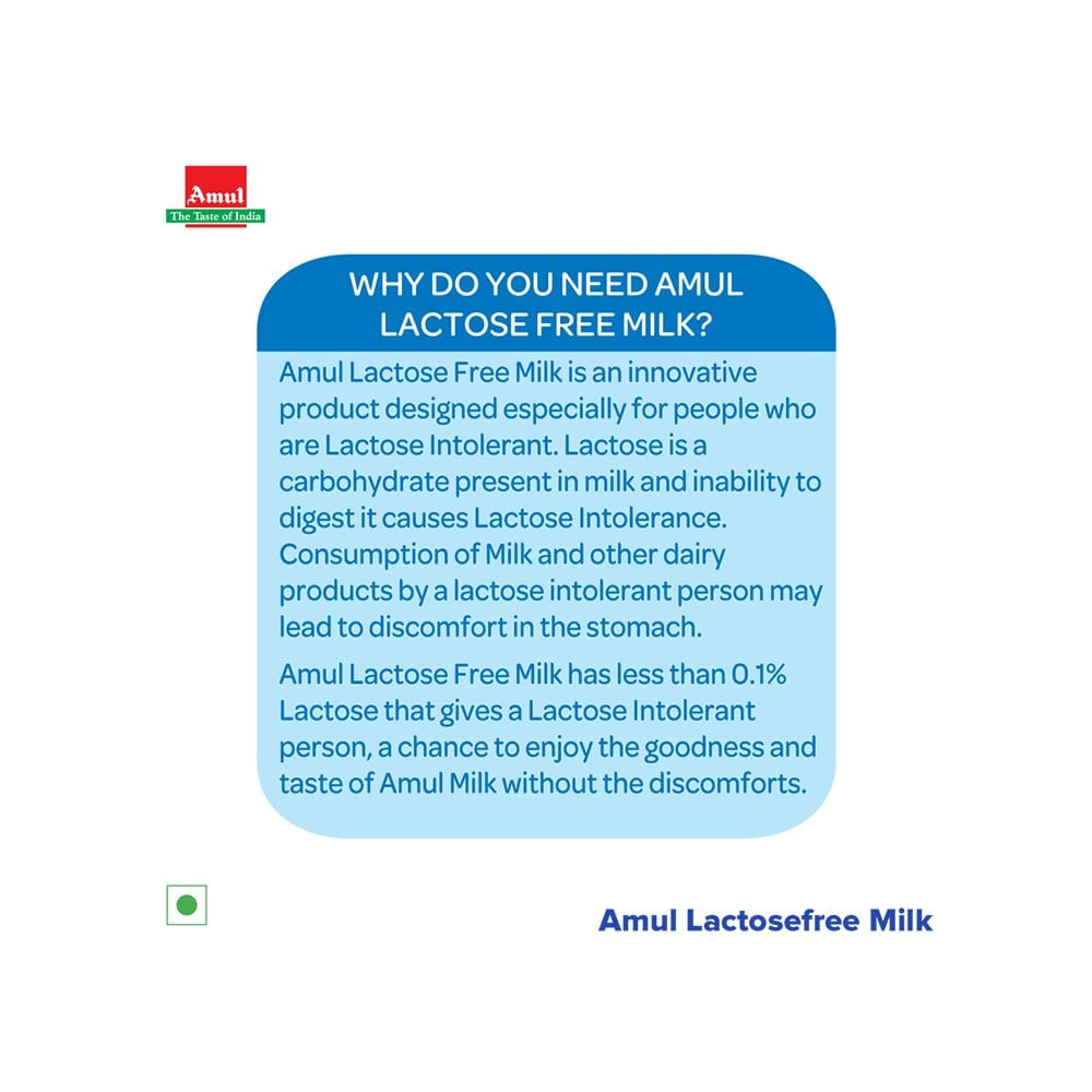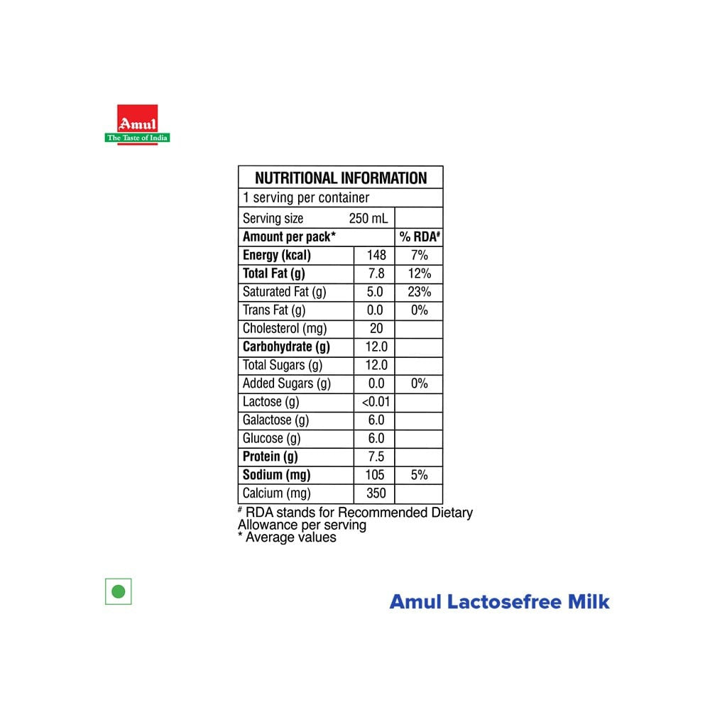 Simply open the pack and enjoy Amul Lactose Free Milk as a refreshing drink. It can also be used in tea, coffee, smoothies, and various recipes that require milk. Shake well before use.