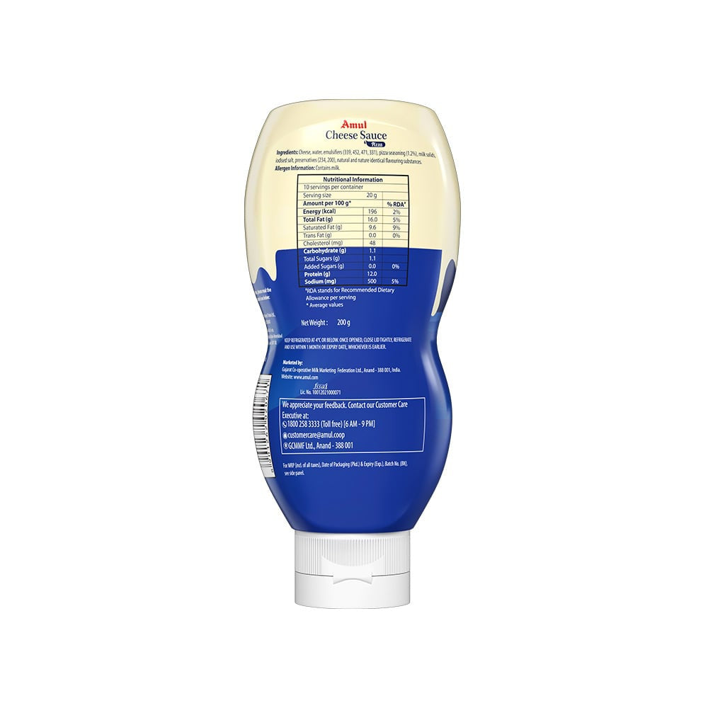 Simply squeeze the Amul Pizza Cheese Sauce onto your prepared pizza or dish. Use it as a topping or a dip to enjoy the rich and creamy flavor. For the best results, pair it with your favorite ingredients and bake or heat as needed.
