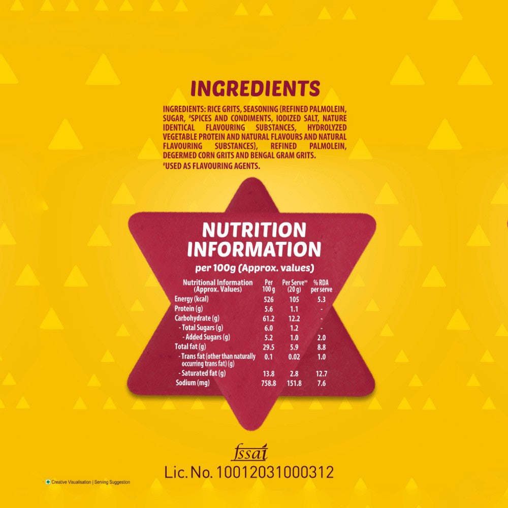 Enjoy a burst of flavor with Bingo Mad Angles Achaari Masti Crisps! These deliciously crispy snacks are perfect for those who crave a tangy and spicy treat. With a unique blend of traditional Indian achar flavors, these crisps are sure to tantalize your taste buds and elevate your snacking experience. Whether you're enjoying them on their own or as an accompaniment to your favorite dips, Bingo Mad Angles Achaari Masti Crisps make every moment a little more exciting.