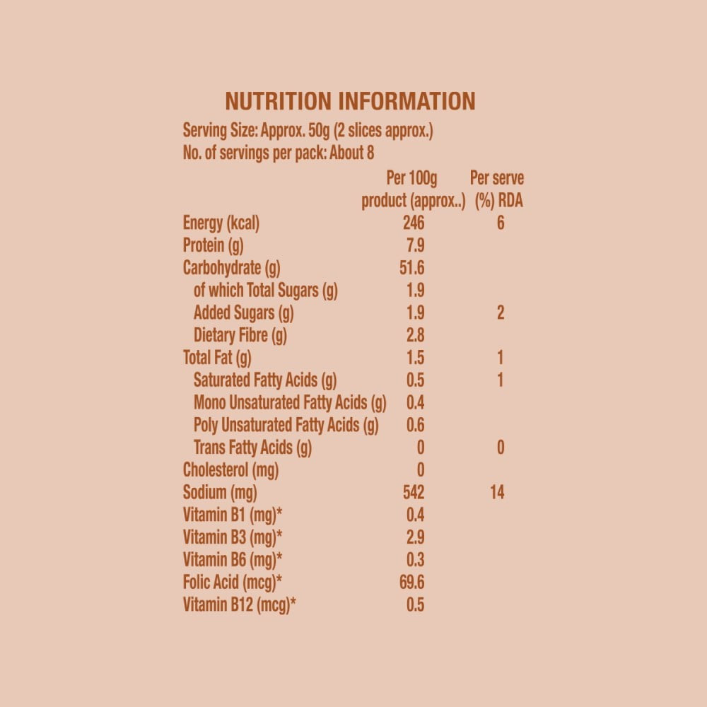 - Key Ingredients: Whole wheat flour, water, yeast, sugar, salt, and preservatives.