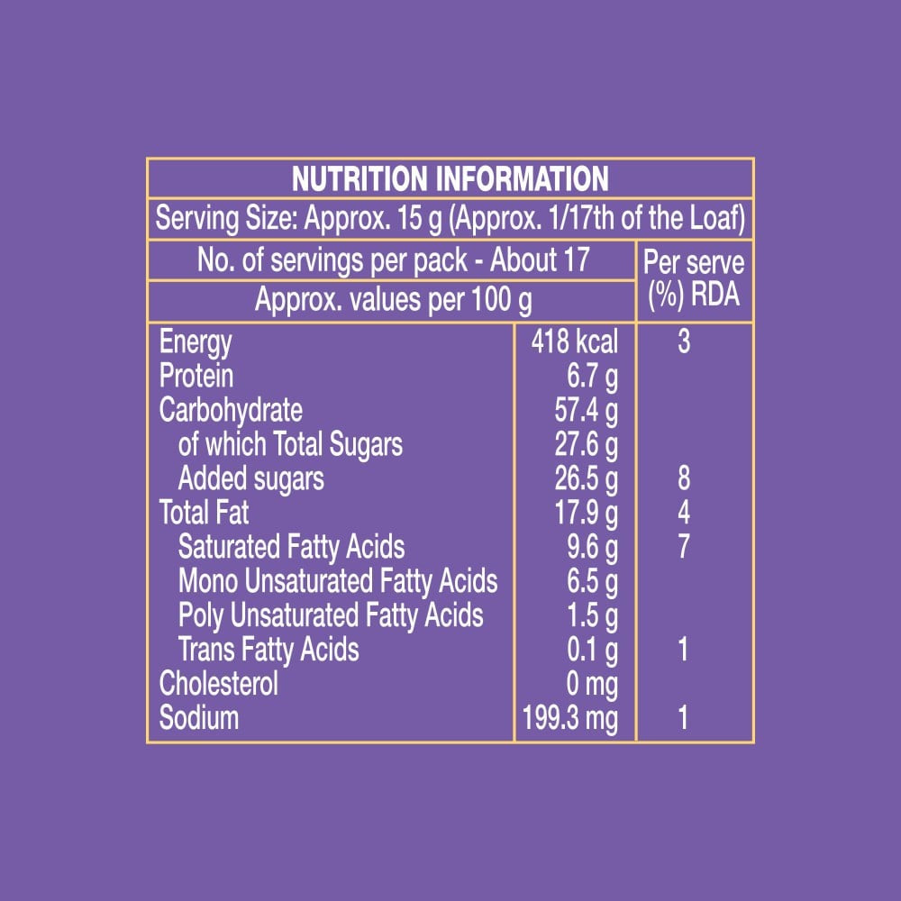 Simply slice the Britannia Double Choco Chip Festive Cake and serve it as a delicious dessert. Enjoy it with a cup of tea or coffee, or serve it at your next gathering to impress your guests!