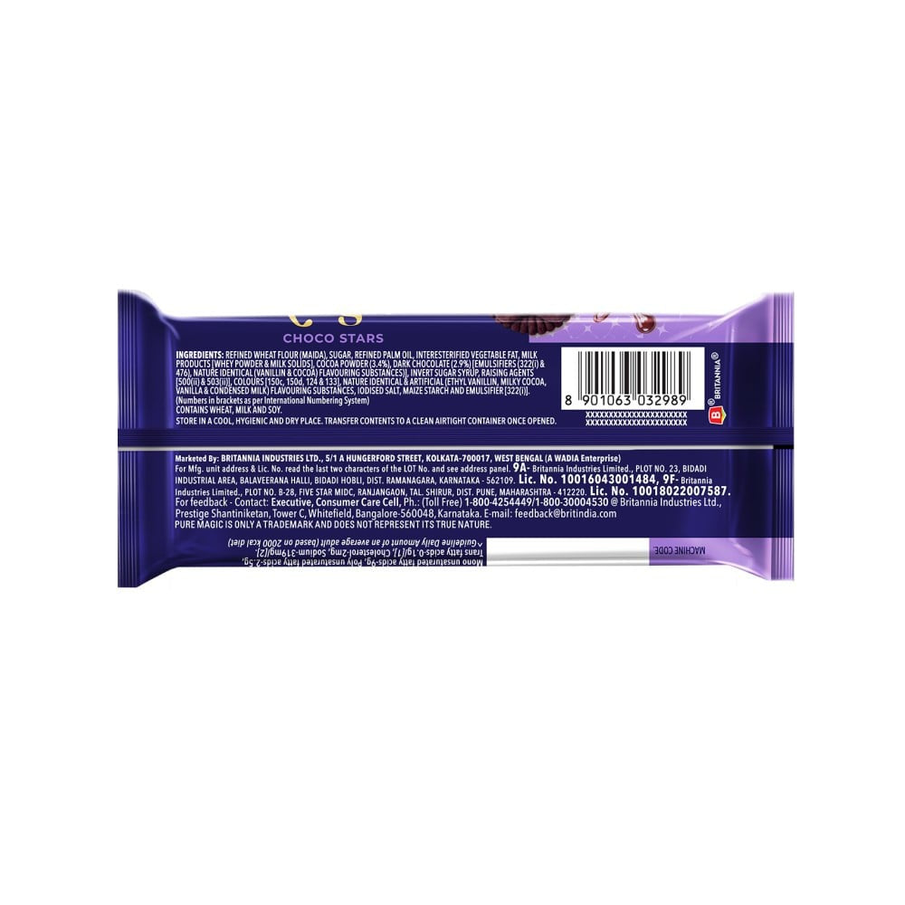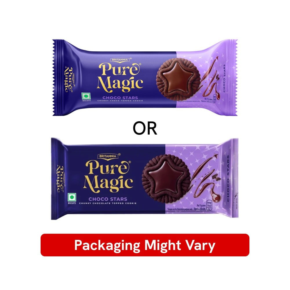 Indulge in the delightful taste of Britannia Pure Magic Choco Stars Chunky Chocolate Topped Cookies. Perfectly crafted for chocolate lovers, these cookies are a heavenly treat that combines the rich flavor of chocolate with a crunchy texture. Each bite is a delightful experience, making them an ideal snack for any time of the day!
