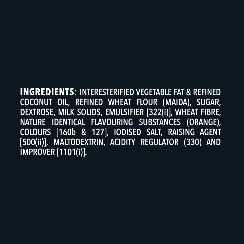 - Key Ingredients: Wheat Flour, Sugar, Palm Oil, Orange Flavour, and other ingredients.