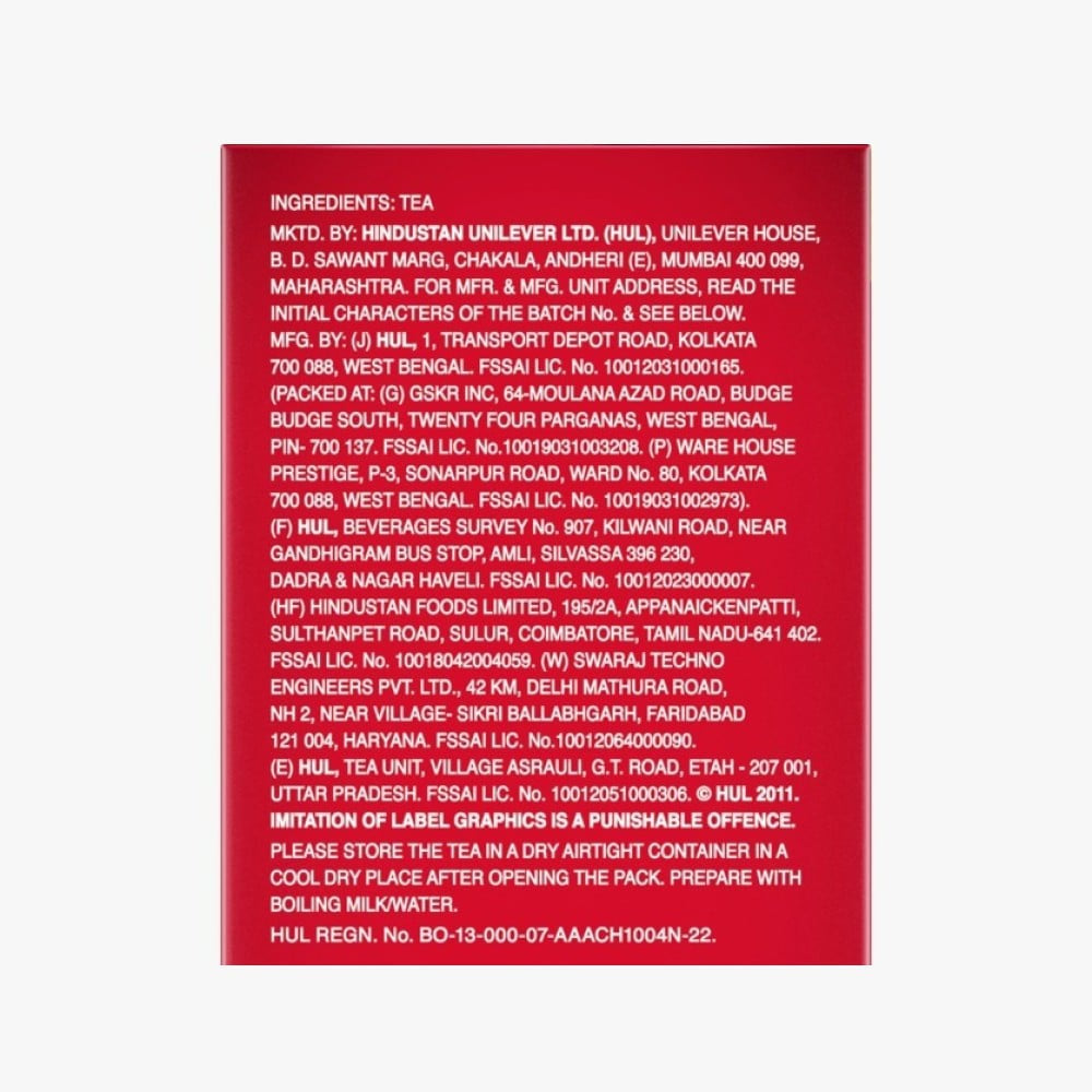 Discover the rich and invigorating taste of Brooke Bond Red Label Natural Tea. Specially crafted to provide a perfect blend of flavor and aroma, this tea is made from the finest tea leaves, promising a refreshing experience with every sip. Whether you enjoy it plain or with your favorite milk and sugar, Brooke Bond Red Label is sure to awaken your senses and brighten your day.