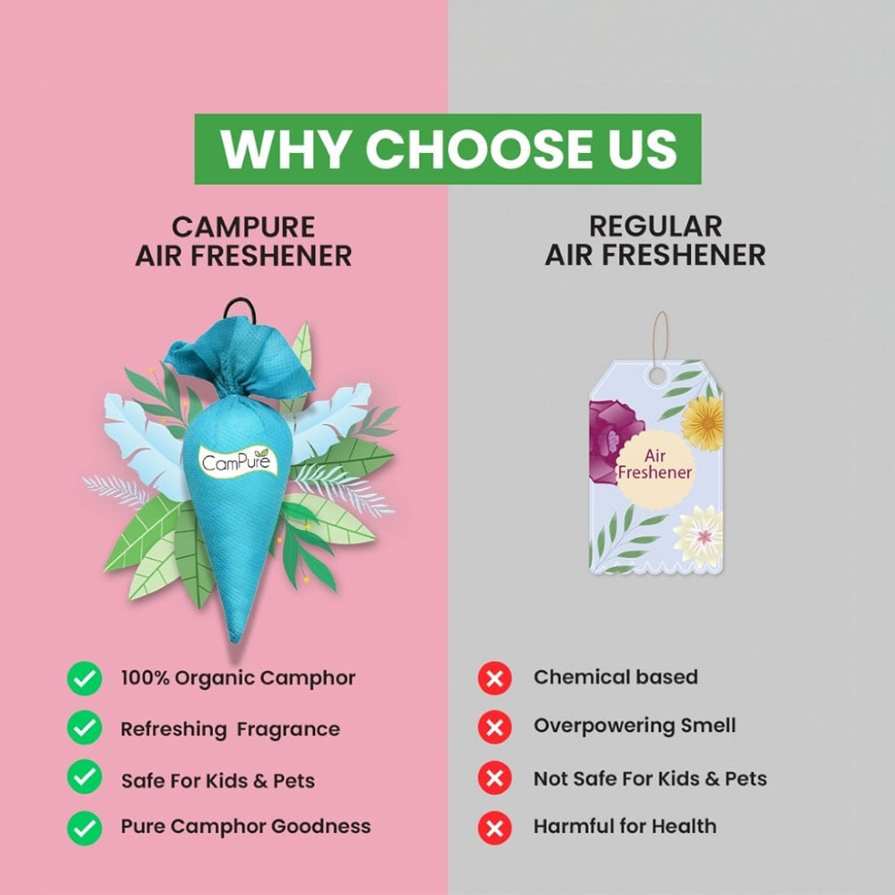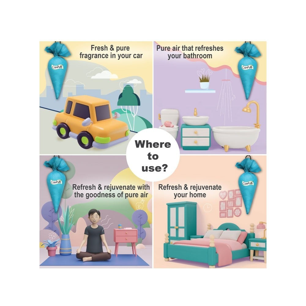 Simply hang the CamPure Camphor Car Freshener Cone in your vehicle using the attached string. Ensure it is placed in a location where air can circulate freely to maximize fragrance distribution. Enjoy the refreshing scent as you drive!