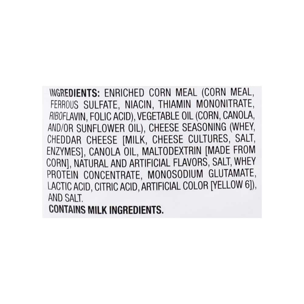 - Key Ingredients: Cornmeal, Vegetable Oil, Cheese Seasoning, and various spices.
