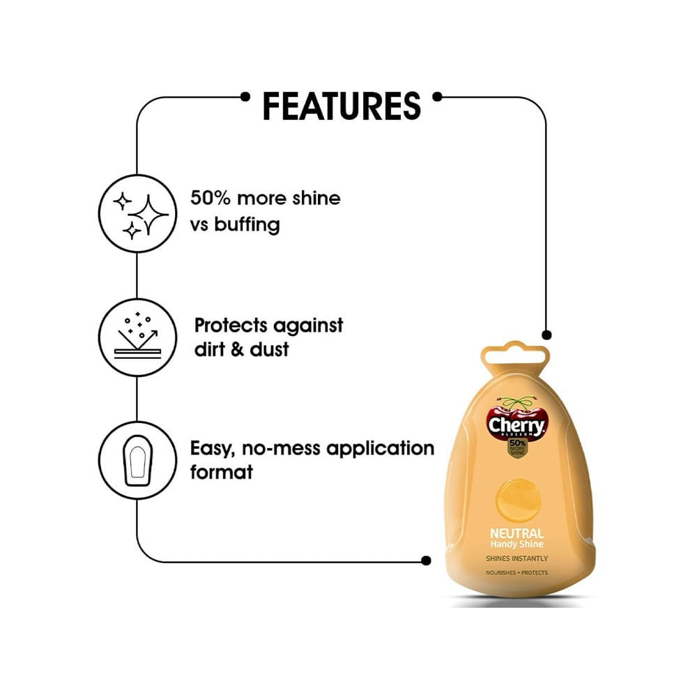 Introducing the Cherry Blossom Neutral Handy Shoe Shiner - Pack of 2, your ultimate solution for keeping your footwear looking pristine and polished. This handy shoe shiner is designed for quick and easy application, making it perfect for those on-the-go moments when you need to touch up your shoes. With a neutral formula, it works well on all colors and materials, ensuring your shoes shine bright and look brand new.