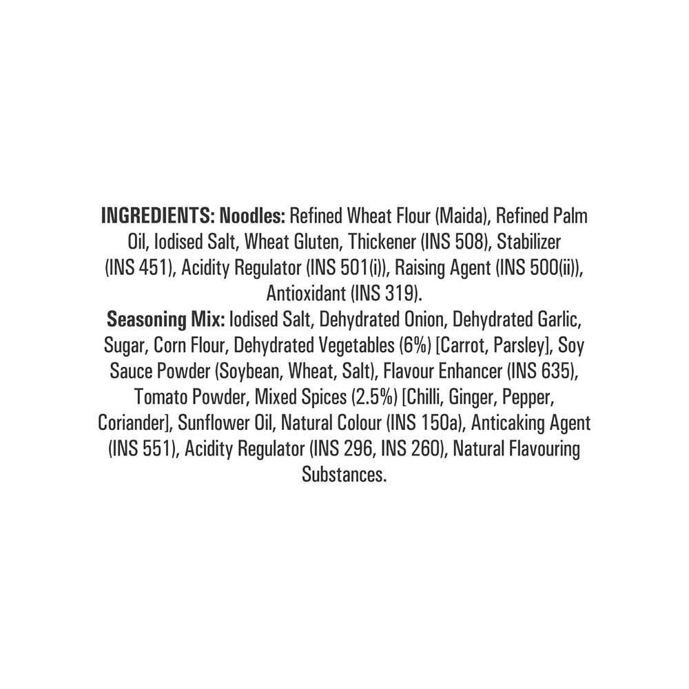 - Key Ingredients: Noodles (Wheat Flour), Manchurian Flavoring, Spices, Seasoning, and Vegetables.