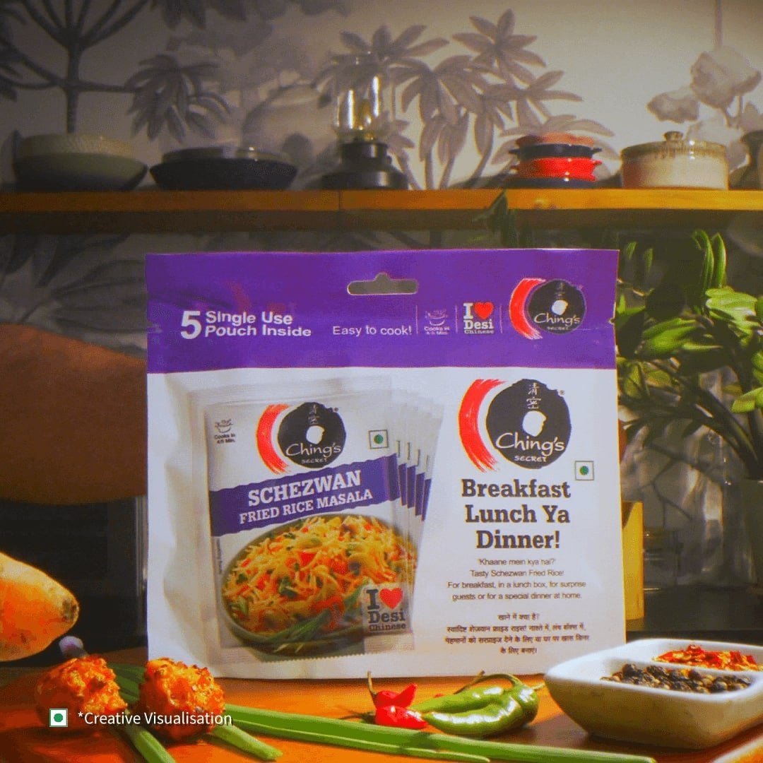 Ching's Secret Schezwan Fried Rice Masala Instant Mix - 5 Single Use Pouches : 5 x 20 g