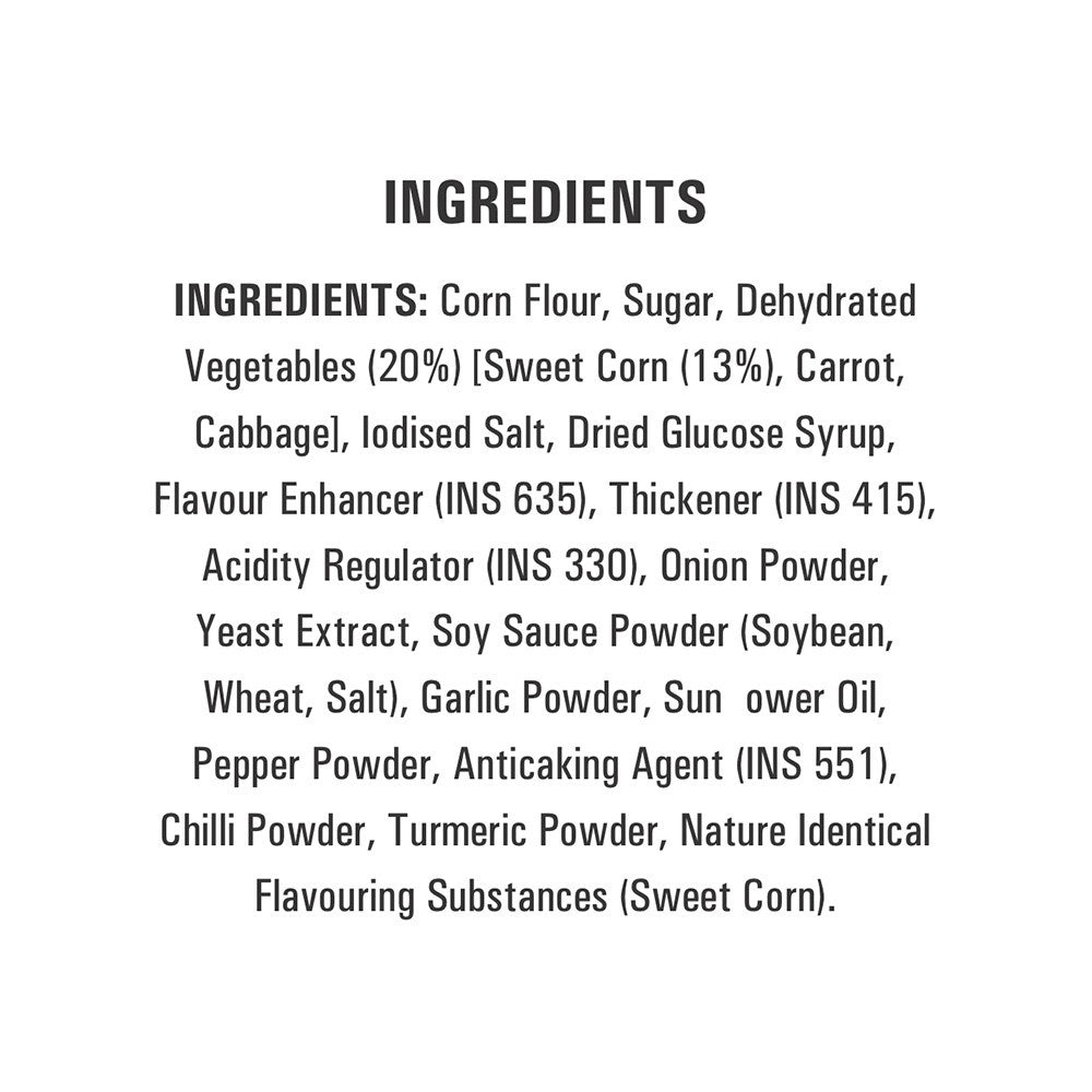 - Key Ingredients: Sweet corn, assorted vegetables, spices, and seasonings.