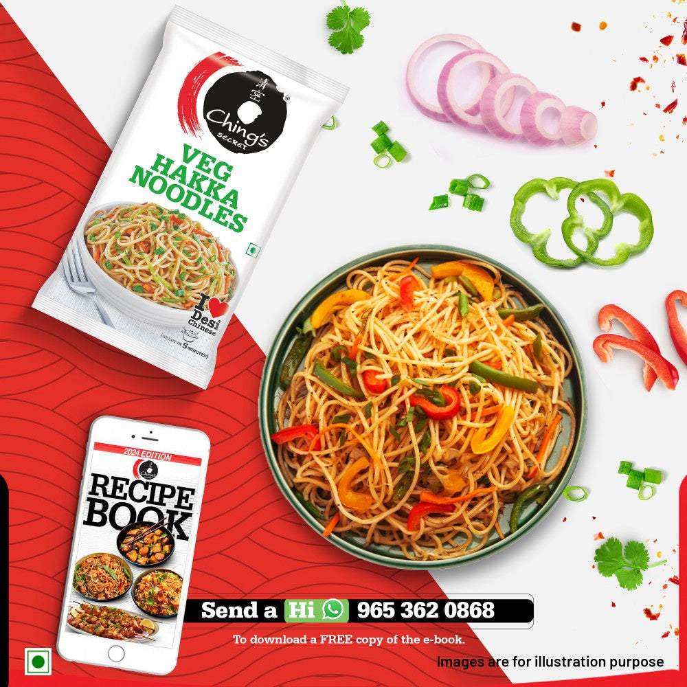 - Flavor/Variants: Veg Hakka Noodles with Dark Soy Sauce