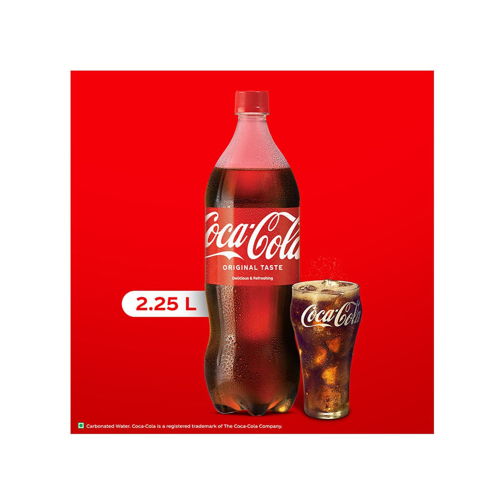 Experience the classic taste of Coca-Cola with our 2.25 L soft drink. Perfect for sharing with friends and family, this refreshing beverage is ideal for any occasion. Enjoy the iconic flavor that has been loved for generations, bringing joy and refreshment with every sip.