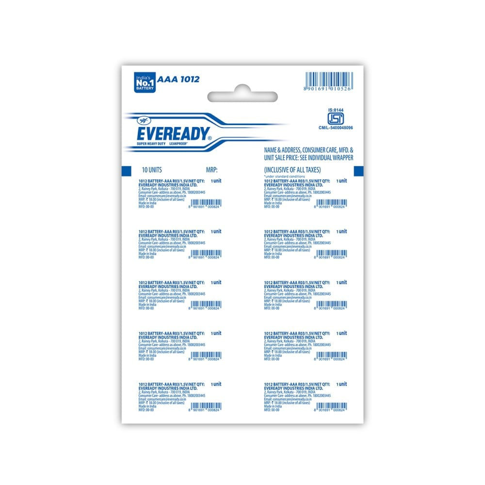 Introducing the Eveready AAA Carbon Zinc Battery - a reliable power source designed to keep your devices running smoothly. With a pack of 10 units, you'll have plenty of batteries to power everything from remote controls to toys and flashlights. Eveready's trusted technology ensures long-lasting performance, making these batteries an essential addition to your household supplies.