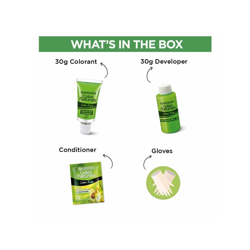 Garnier Color Naturals Nourishing Permanent Hair Colour in Darkest Brown is your ideal solution for vibrant, long-lasting color with the added benefit of nourishment. This permanent hair color not only provides rich, deep color but also cares for your hair during the coloring process. Enriched with natural ingredients, it ensures that your hair remains healthy, soft, and shiny.